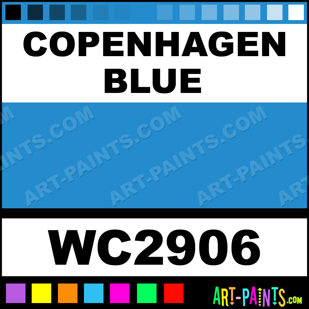 This beautiful Artist 36 Set Watercolor shade is called Copenhagen Blue, and comes from a company called Prismacolor. Their product number, along with the HTML color code, RGB, and CMYK codes are listed below. This Beautiful Shade of Copenhagen Blue and others can be found in the Prismacolor Artist 36 Set Art Paint Gallery! Also be sure to browse through the other wonderful Professional Color Galleries to see more of Prismacolor Artist 36 Set Watercolor Brand Paints and other Paint Manufacturers. And as always, Paint Paint Paint! -Art-Paints.com