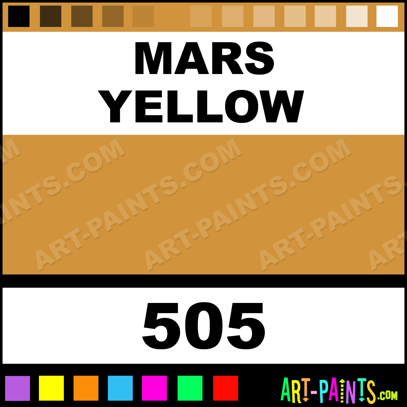 This beautiful Aquarelle Watercolor shade is called Mars Yellow, and comes from a company called Sennelier. Their product number, along with the HTML color code, RGB, and CMYK codes are listed below. This Beautiful Shade of Mars Yellow and others can be found in the Sennelier Aquarelle Art Paint Gallery! Also be sure to browse through the other wonderful Professional Color Galleries to see more of Sennelier Aquarelle Watercolor Brand Paints and other Paint Manufacturers. And as always, Paint Paint Paint! -Art-Paints.com