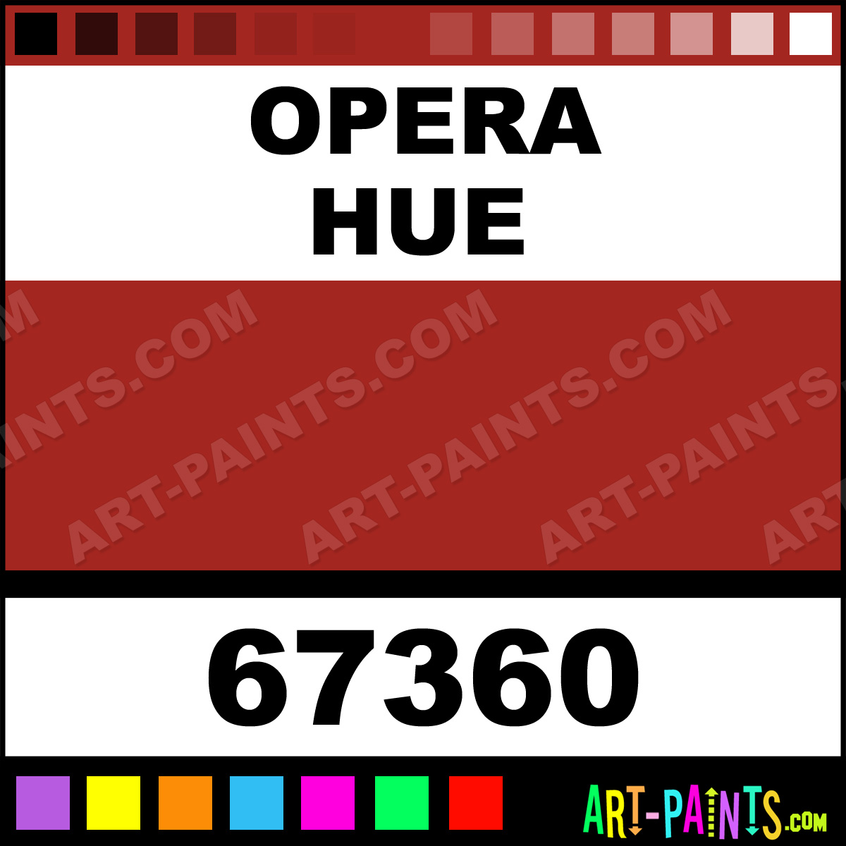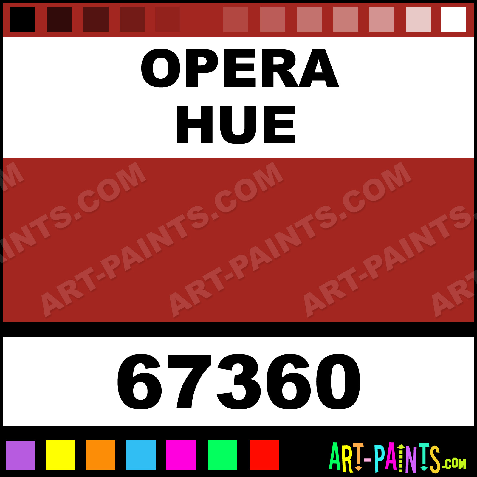 This beautiful Korean Watercolor shade is called Opera, and comes from a company called ShinHan. Their product number, along with the HTML color code, RGB, and CMYK codes are listed below. This Beautiful Shade of Opera and others can be found in the ShinHan Korean Art Paint Gallery! Also be sure to browse through the other wonderful Professional Color Galleries to see more of ShinHan Korean Watercolor Brand Paints and other Paint Manufacturers. And as always, Paint Paint Paint! -Art-Paints.com
