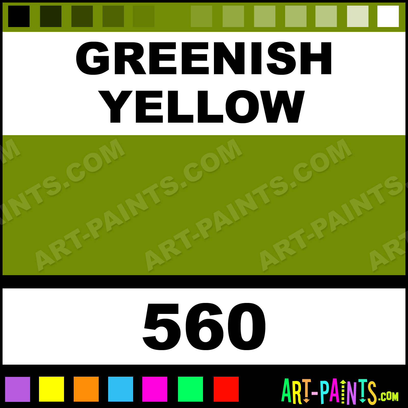 This beautiful Premium Watercolor shade is called Greenish Yellow, and comes from a company called ShinHan. Their product number, along with the HTML color code, RGB, and CMYK codes are listed below. This Beautiful Shade of Greenish Yellow and others can be found in the ShinHan Premium Art Paint Gallery! Also be sure to browse through the other wonderful Professional Color Galleries to see more of ShinHan Premium Watercolor Brand Paints and other Paint Manufacturers. And as always, Paint Paint Paint! -Art-Paints.com