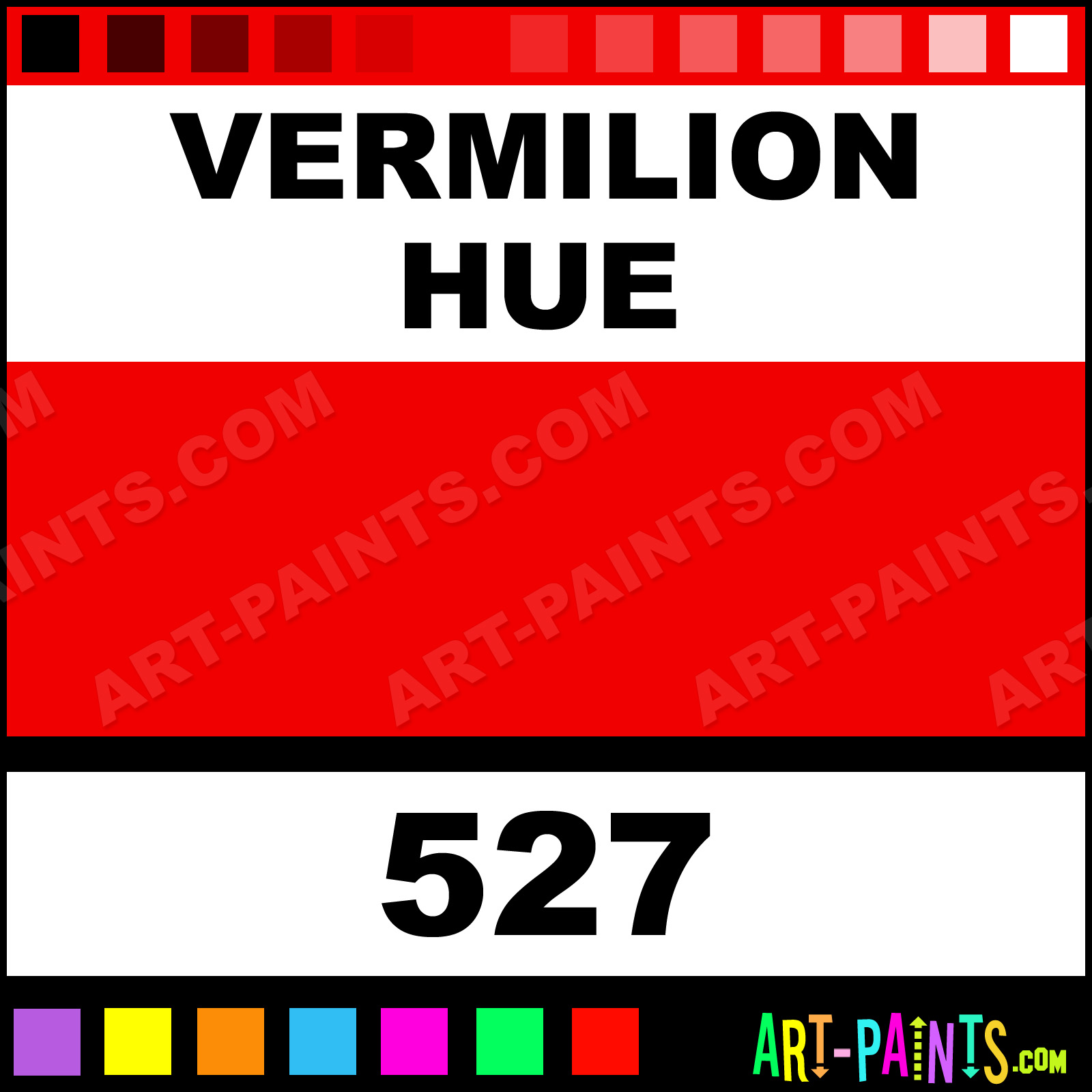 This beautiful Premium Watercolor shade is called Vermilion, and comes from a company called ShinHan. Their product number, along with the HTML color code, RGB, and CMYK codes are listed below. This Beautiful Shade of Vermilion and others can be found in the ShinHan Premium Art Paint Gallery! Also be sure to browse through the other wonderful Professional Color Galleries to see more of ShinHan Premium Watercolor Brand Paints and other Paint Manufacturers. And as always, Paint Paint Paint! -Art-Paints.com