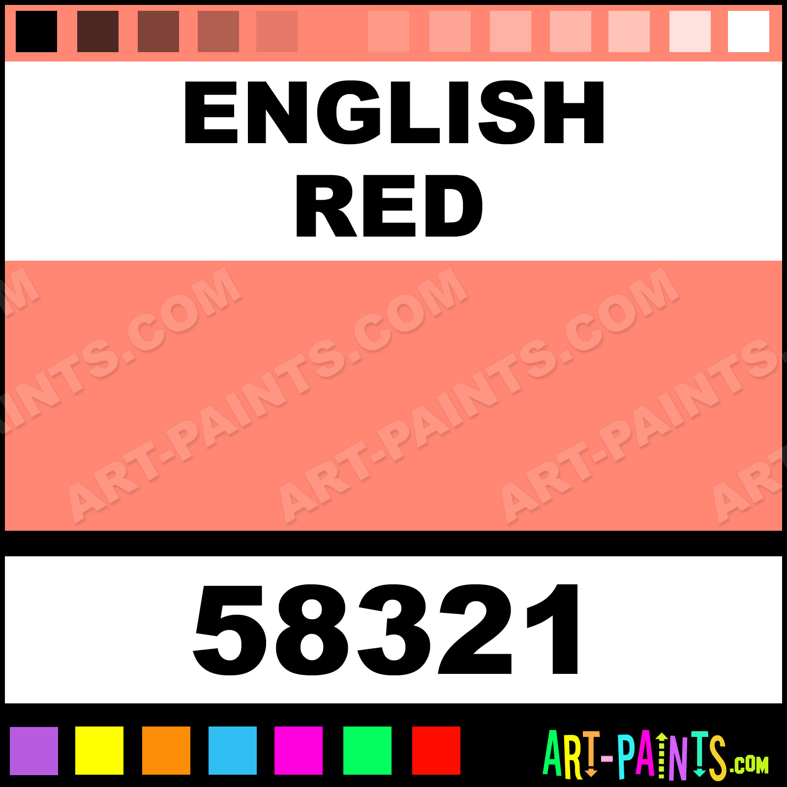This beautiful Whole Pan Watercolor shade is called English Red, and comes from a company called St Petersburg. Their product number, along with the HTML color code, RGB, and CMYK codes are listed below. This Beautiful Shade of English Red and others can be found in the St Petersburg Whole Pan Art Paint Gallery! Also be sure to browse through the other wonderful Professional Color Galleries to see more of St Petersburg Whole Pan Watercolor Brand Paints and other Paint Manufacturers. And as always, Paint Paint Paint! -Art-Paints.com
