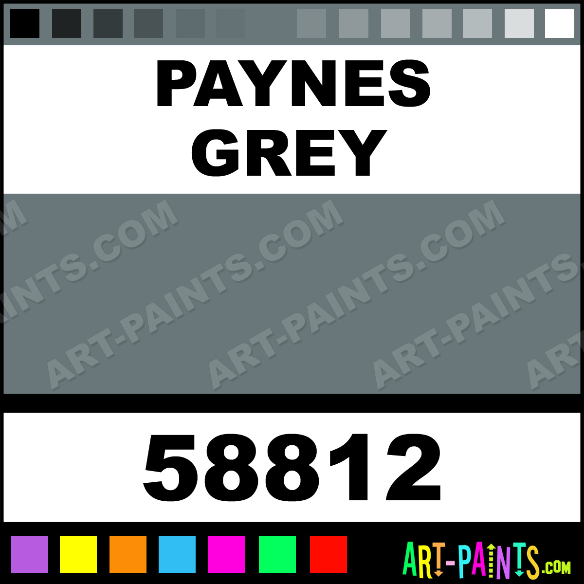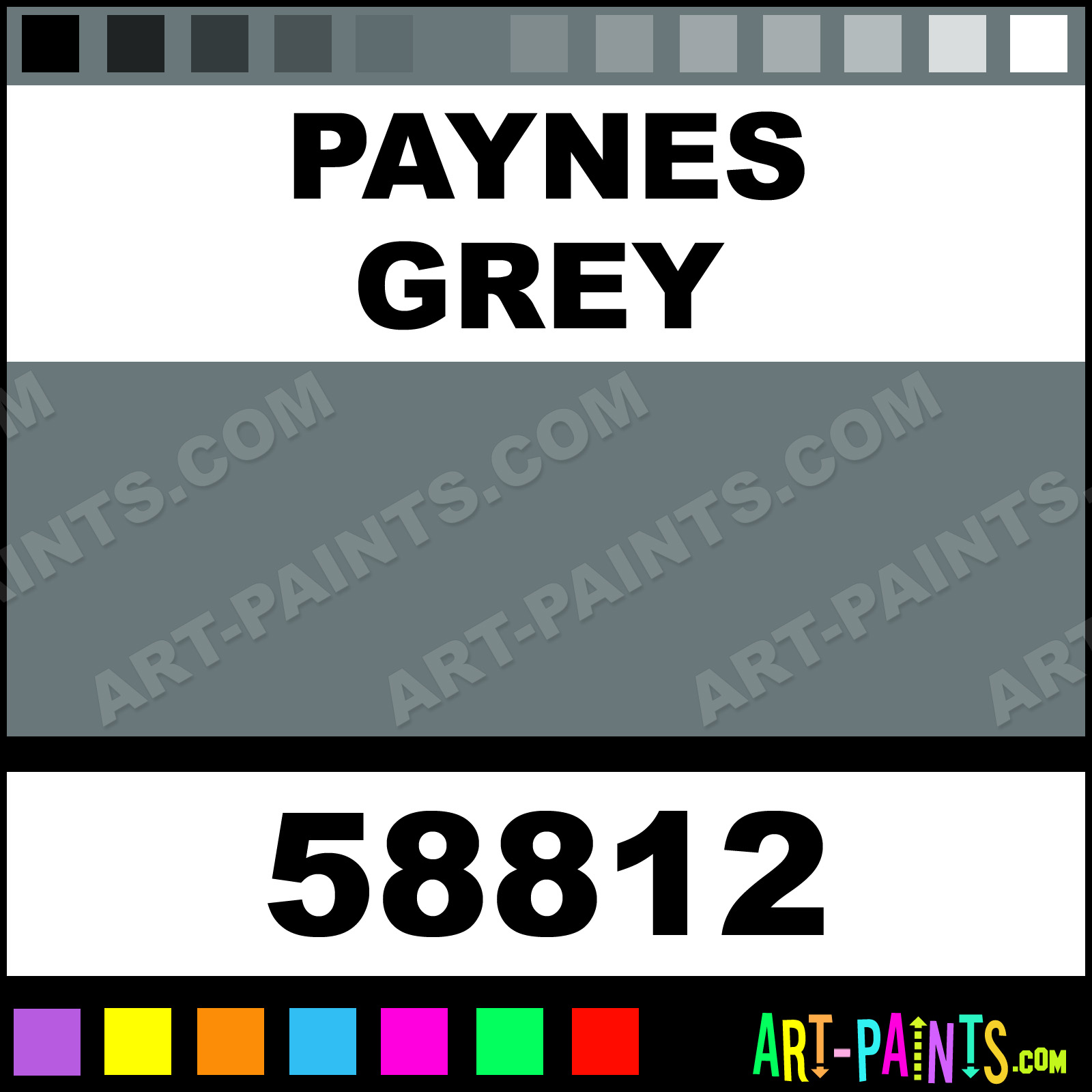 This beautiful Whole Pan Watercolor shade is called Paynes Grey, and comes from a company called St Petersburg. Their product number, along with the HTML color code, RGB, and CMYK codes are listed below. This Beautiful Shade of Paynes Grey and others can be found in the St Petersburg Whole Pan Art Paint Gallery! Also be sure to browse through the other wonderful Professional Color Galleries to see more of St Petersburg Whole Pan Watercolor Brand Paints and other Paint Manufacturers. And as always, Paint Paint Paint! -Art-Paints.com