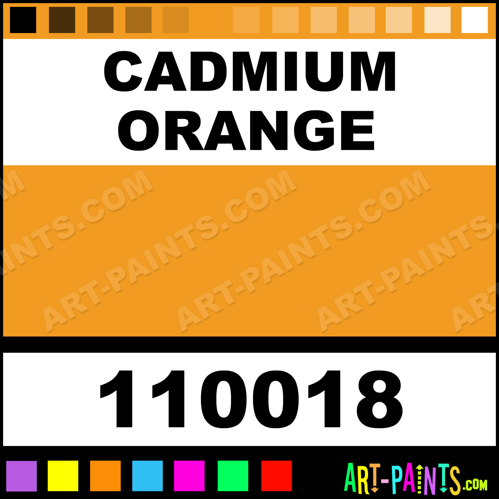 This beautiful Professional Watercolor shade is called Cadmium Orange, and comes from a company called Stephen Quiller. Their product number, along with the HTML color code, RGB, and CMYK codes are listed below. This Beautiful Shade of Cadmium Orange and others can be found in the Stephen Quiller Professional Art Paint Gallery! Also be sure to browse through the other wonderful Professional Color Galleries to see more of Stephen Quiller Professional Watercolor Brand Paints and other Paint Manufacturers. And as always, Paint Paint Paint! -Art-Paints.com