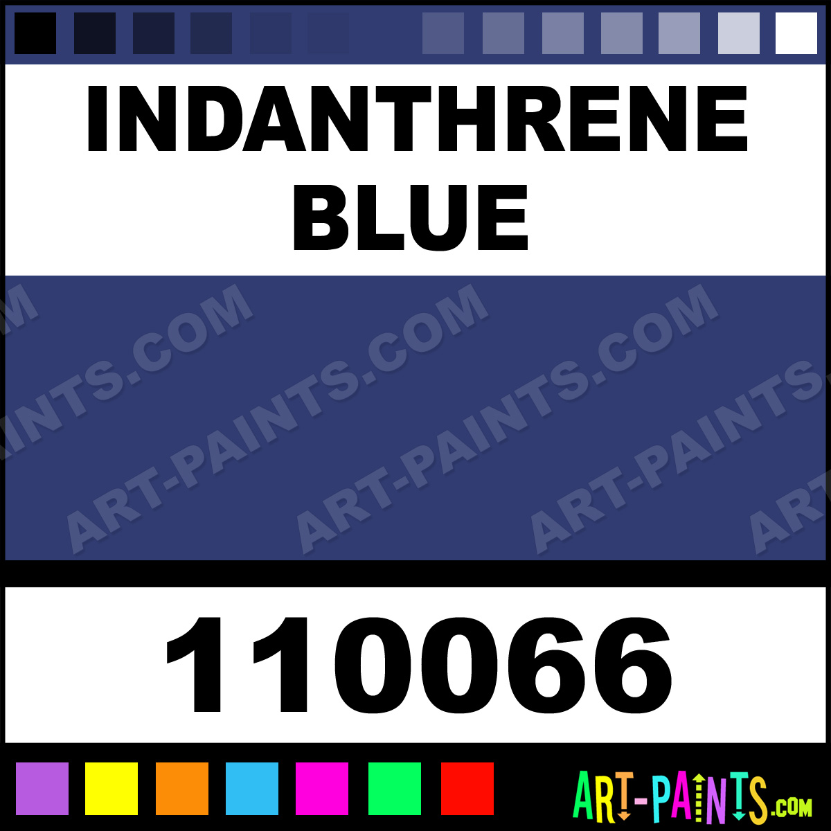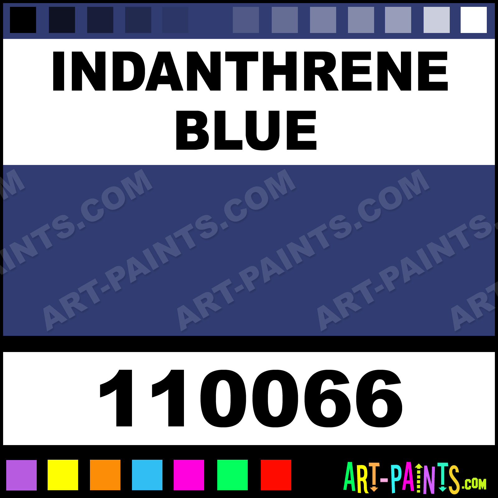 This beautiful Professional Watercolor shade is called Indanthrene Blue, and comes from a company called Stephen Quiller. Their product number, along with the HTML color code, RGB, and CMYK codes are listed below. This Beautiful Shade of Indanthrene Blue and others can be found in the Stephen Quiller Professional Art Paint Gallery! Also be sure to browse through the other wonderful Professional Color Galleries to see more of Stephen Quiller Professional Watercolor Brand Paints and other Paint Manufacturers. And as always, Paint Paint Paint! -Art-Paints.com