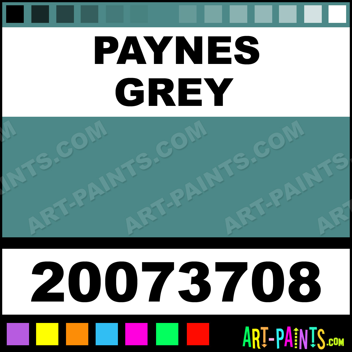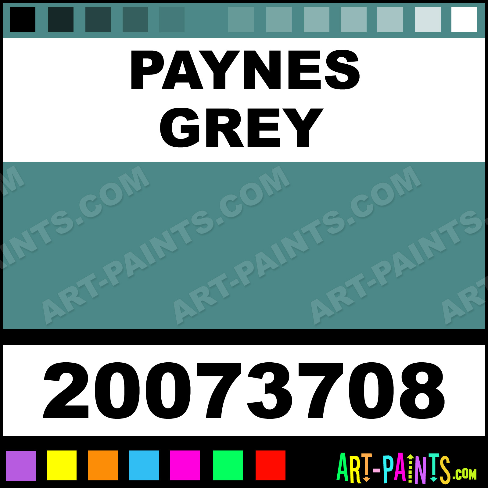 This beautiful Student Watercolor shade is called Paynes Grey, and comes from a company called Talens. Their product number, along with the HTML color code, RGB, and CMYK codes are listed below. This Beautiful Shade of Paynes Grey and others can be found in the Talens Student Art Paint Gallery! Also be sure to browse through the other wonderful Professional Color Galleries to see more of Talens Student Watercolor Brand Paints and other Paint Manufacturers. And as always, Paint Paint Paint! -Art-Paints.com
