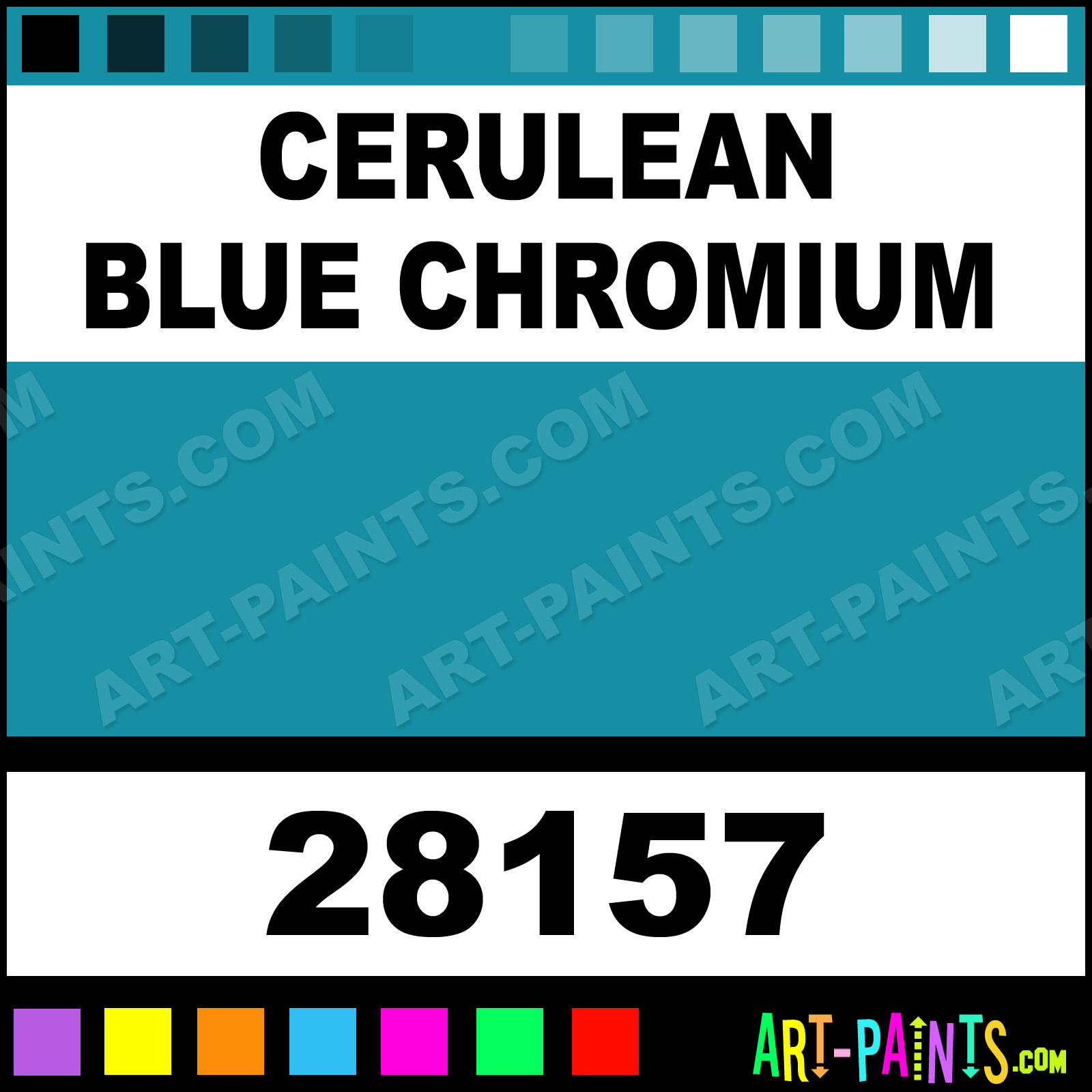 This beautiful Professional Watercolor shade is called Cerulean Blue Chromium, and comes from a company called Utrecht. Their product number, along with the HTML color code, RGB, and CMYK codes are listed below. This Beautiful Shade of Cerulean Blue Chromium and others can be found in the Utrecht Professional Art Paint Gallery! Also be sure to browse through the other wonderful Professional Color Galleries to see more of Utrecht Professional Watercolor Brand Paints and other Paint Manufacturers. And as always, Paint Paint Paint! -Art-Paints.com