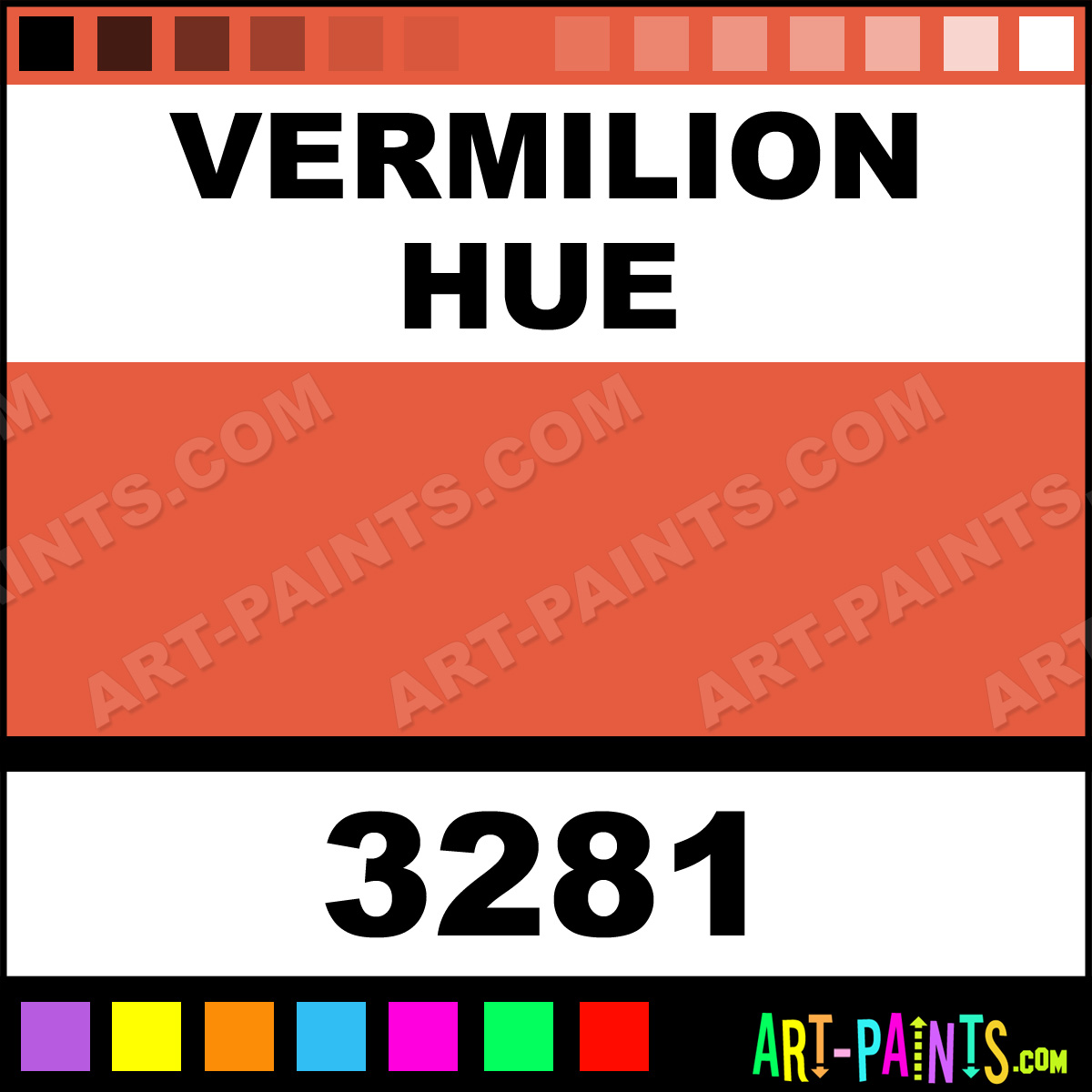 This beautiful Artist Watercolor shade is called Vermilion, and comes from a company called Van Gogh. Their product number, along with the HTML color code, RGB, and CMYK codes are listed below. This Beautiful Shade of Vermilion and others can be found in the Van Gogh Artist Art Paint Gallery! Also be sure to browse through the other wonderful Professional Color Galleries to see more of Van Gogh Artist Watercolor Brand Paints and other Paint Manufacturers. And as always, Paint Paint Paint! -Art-Paints.com
